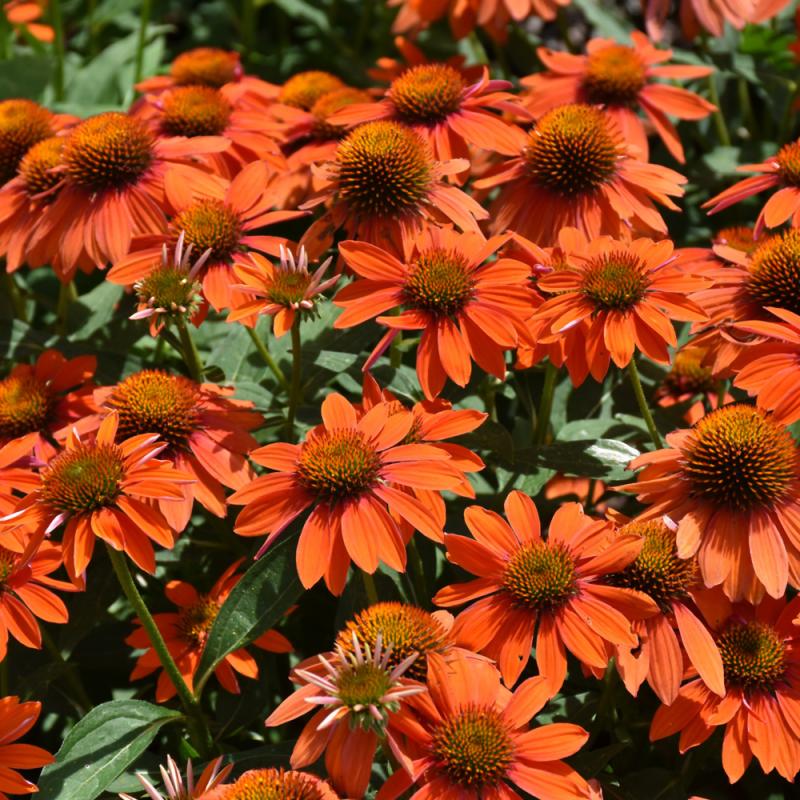 Glowing, orange flowers with copper cones, produced on strong, well-branched stems; attracts pollinators and feeds birds in winter; use in naturalized areas with other native plants.