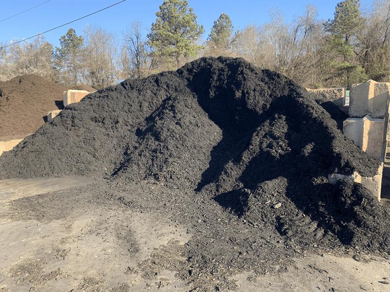 Shredded natural hardwood mulch, dyed black. Helps retain moisture in the Summer and insulate plants in the Winter.