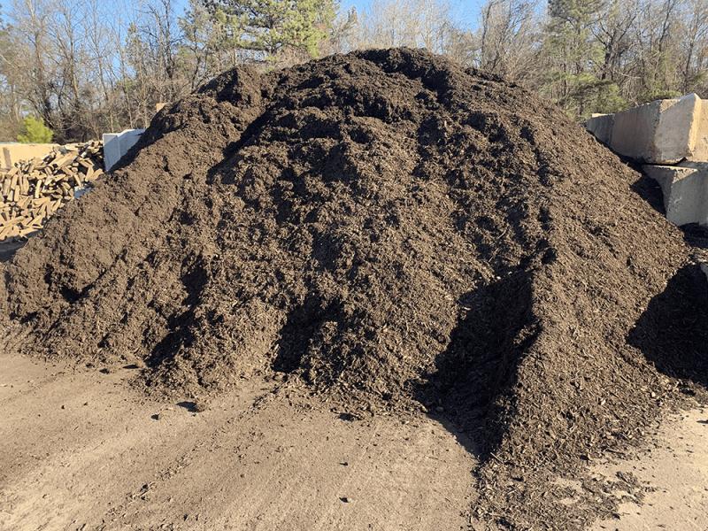 Shredded natural hardwood mulch, dyed brown. Helps retain moisture in the Summer and insulate plants in the Winter.