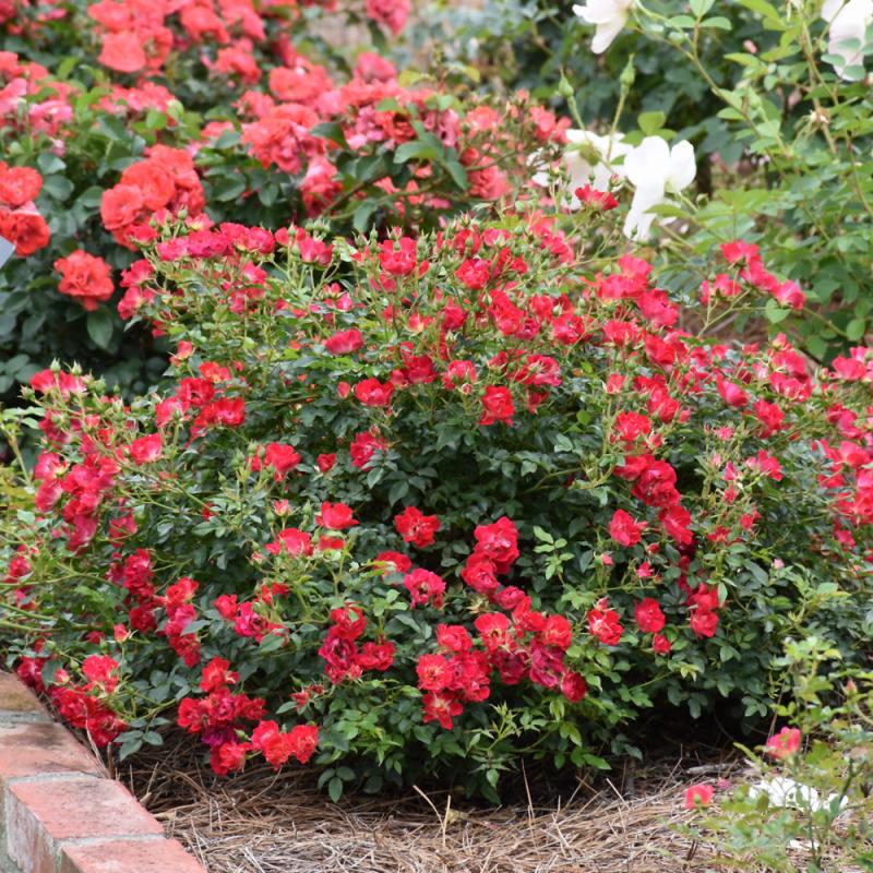 A low growing blanket of deep green foliage punctuated with multiple bright red blooms resembles a splashing fountain of color that requires little pampering; perfect to create a definitive border or as a dazzling ground cover.