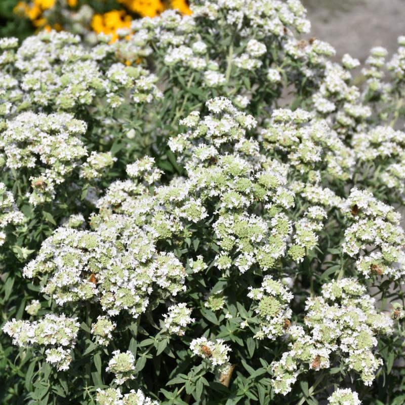 Hairy Mountain Mint features showy clusters of white flowers with purple spots at the ends of the stems from mid summer to mid fall. The flowers are excellent for cutting. Its fragrant pointy leaves remain grayish green in color throughout the season.
